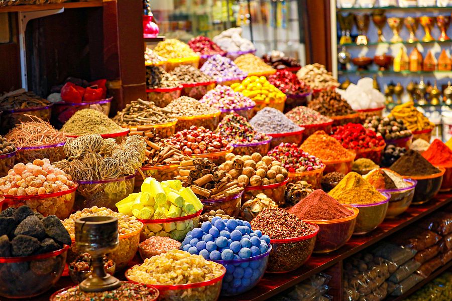 Poté nastoupíme na typický dopravní prostředek do Creeku - dřevěné lodičky a necháme se přepravit na typická arabská tržiště - souky. Navštívit můžeme Gold Souk (trh se zlatem), Spice Souk (s kořením) apod.