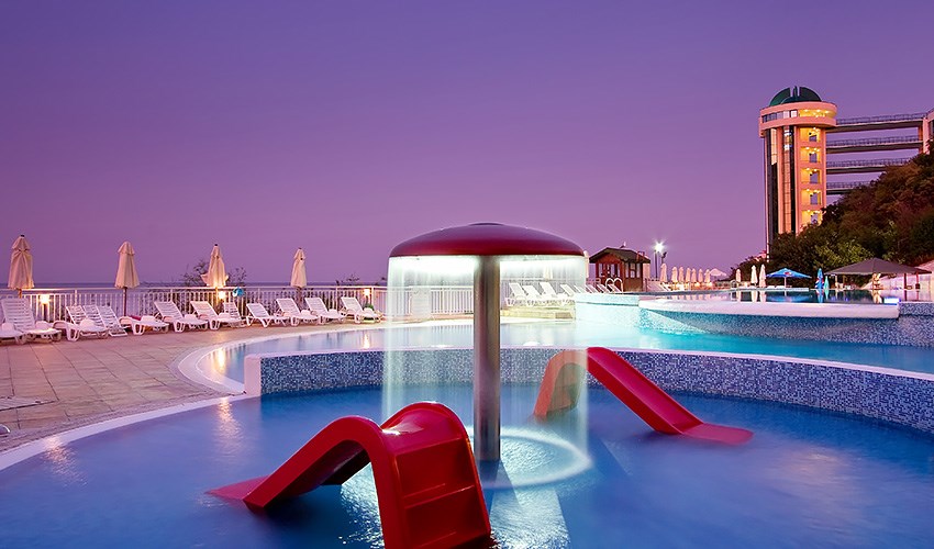 All inclusive – snídaně, obědy a večeře formou bufetu. Lehké občerstvení během dne, zmrzlina v baru u bazénu. Vybrané místní nealkoholické a alkoholické nápoje v místech a časech určených hotelem (10:00–22:30).