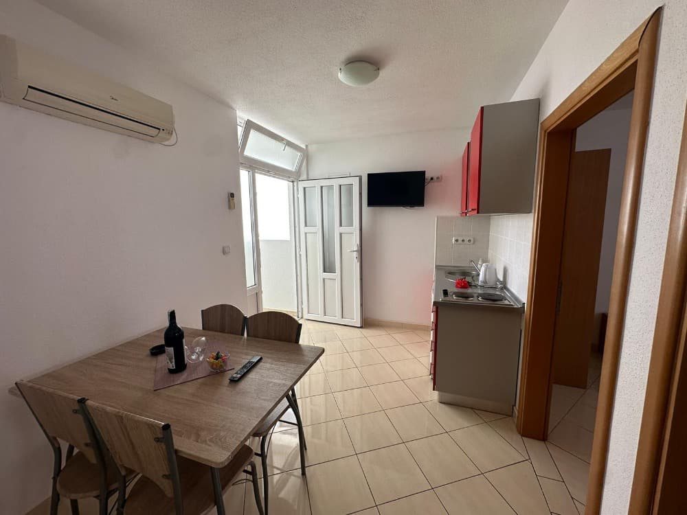 2 apartmány A 2+2 - apartmán má jednu dvoulůžkovou ložnici, rozkládací pohovku v obývacím pokoji, kuchyňský kout, koupelnu s WC