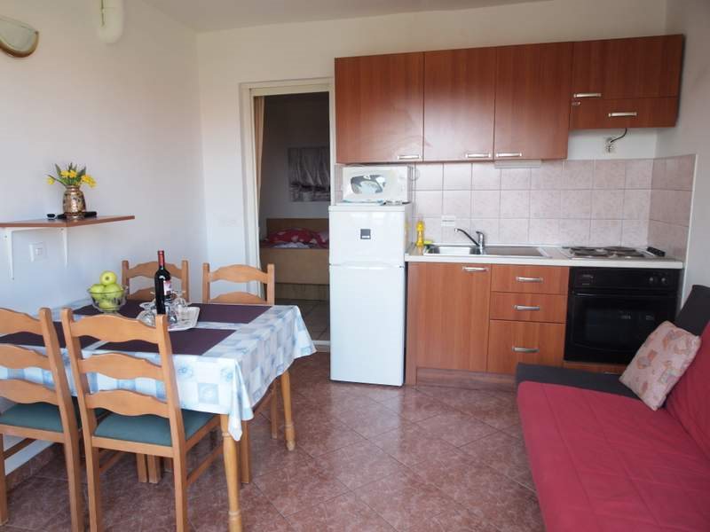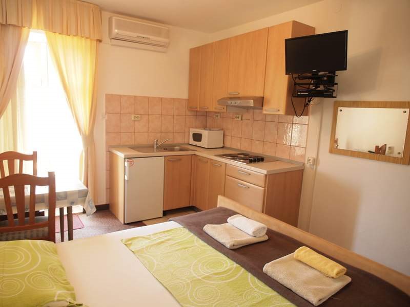 typ A - studio pro 2 osoby: 3. patro, denní místnost s lůžkem pro 2 osoby, kuchyňský kout, jídlení stůl, SAT Tv, koupelna, WC, klimatizace, balkon směr moře. velikost cca 20 m2. WiFi zdarma.