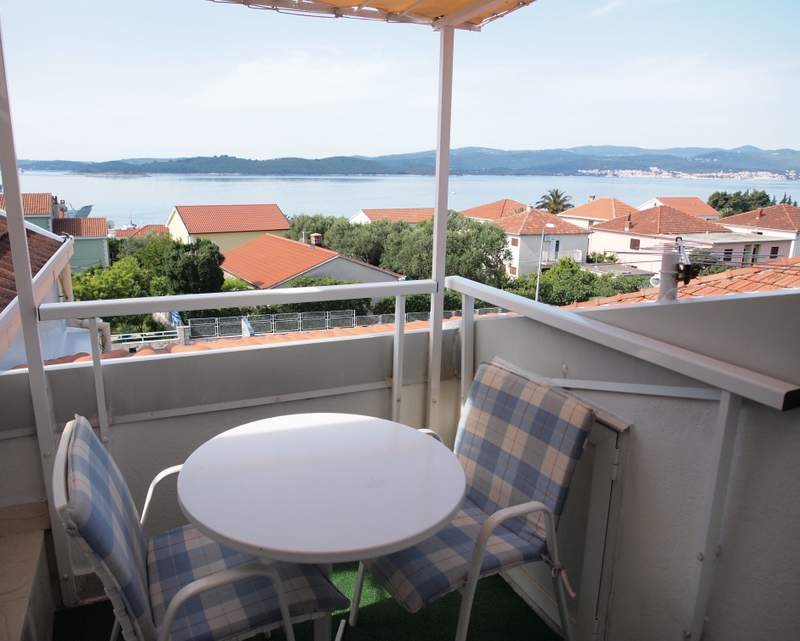 typ B1 - apartmán 4 : 2. patro, 2 x ložnice, 2 x koupelna s WC, obývací místnost s kuchyní, SAT TV, balkon směr moře, klimatizace. Velikost cca 45 m2. WiFi zdarma.