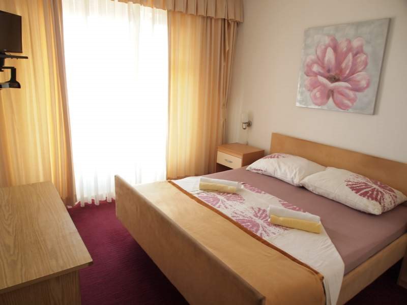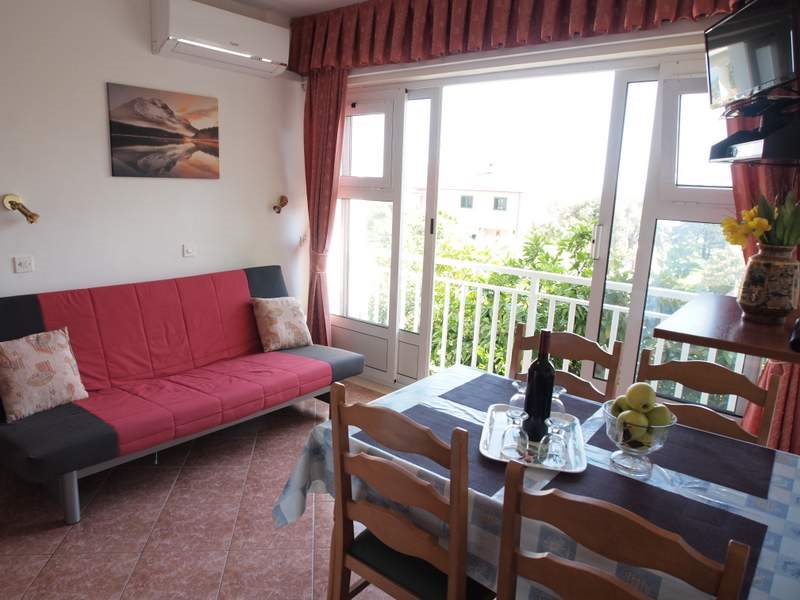 typ B - apartmán 2+2: 2. patro, 1 x ložnice, denní místnost s rozkládacím lůžkem pro 1-2 děti, kuchyňský kout, jídlení stůl, SAT Tv, koupelna, WC, klimatizace, francouzské okno. Velikost cca 30 m2. WiFi zdarma.