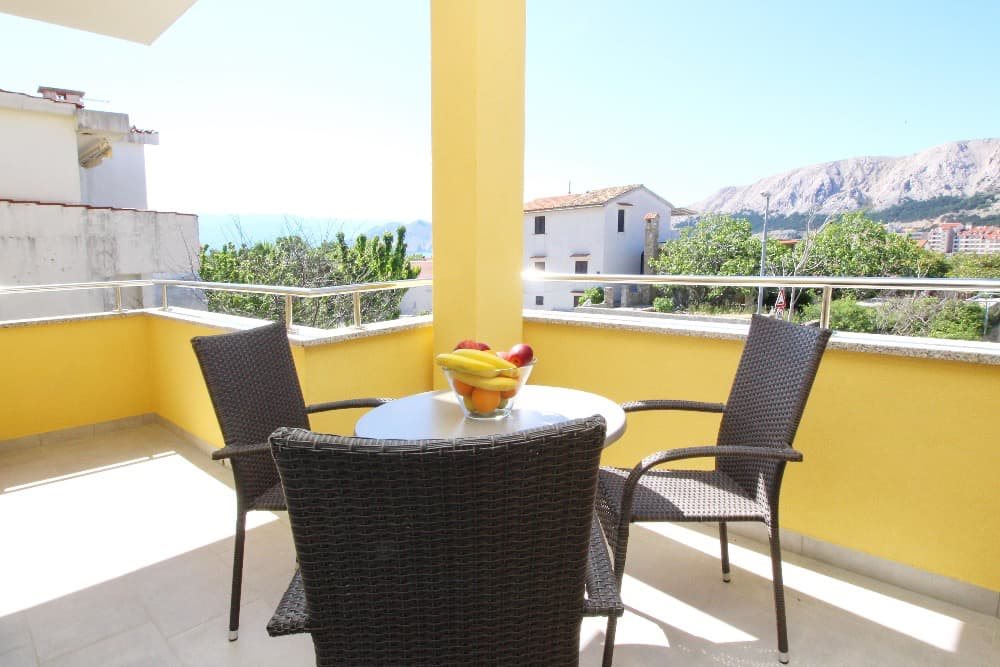Apartmány Brnić: Apartmani Brnić nabízí ubytování v oblíbeném letovisku Baška na ostrově Krk. V domě je několik jednotek pro 2–5 osob (orientačně 35–50 m²), všechny s balkonem, některé s výhledem na moře; k dispozici je parkování u objektu. Domácí mazlíčci jsou možni za příplatek (dle typu apartmánu). K moři je to cca 45 m, do centra 300 m