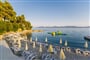 Lehátka a slunečníky k dispozici u bazénů a na pláži