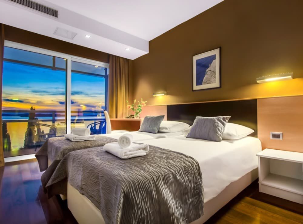 pokoje superior dvoulůžkové pokoje s možností přistýlky. Pokoje mají sprchu WC, klimatizaci , balkon , SAT TV, telefon , minibar a fén - max obsazenost 2 dospělé osoby + 2 děti (dítě do 2,99 let bez lůžka, spí s rodiči a dítě do 11,99 let spí na přistýlce)