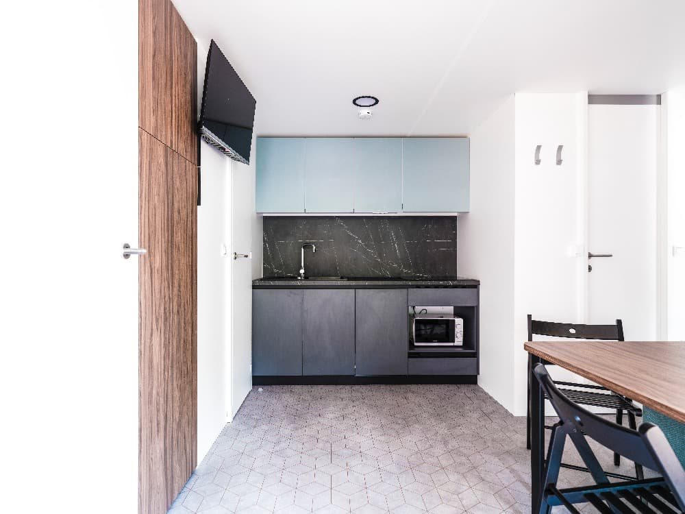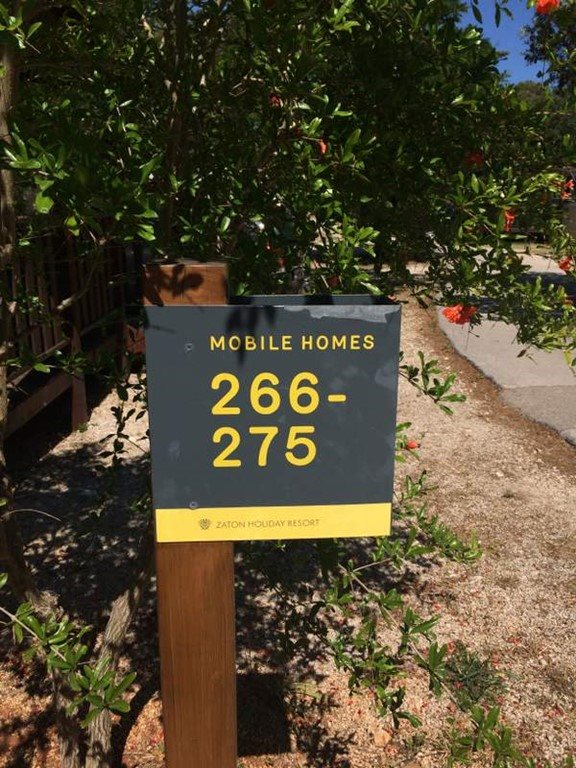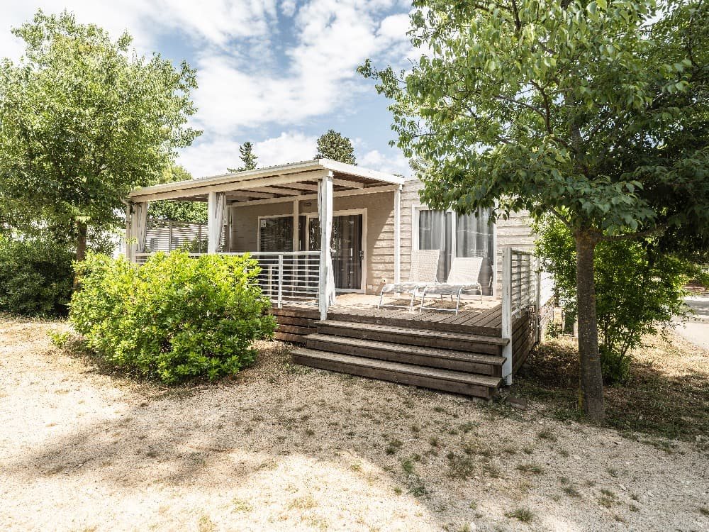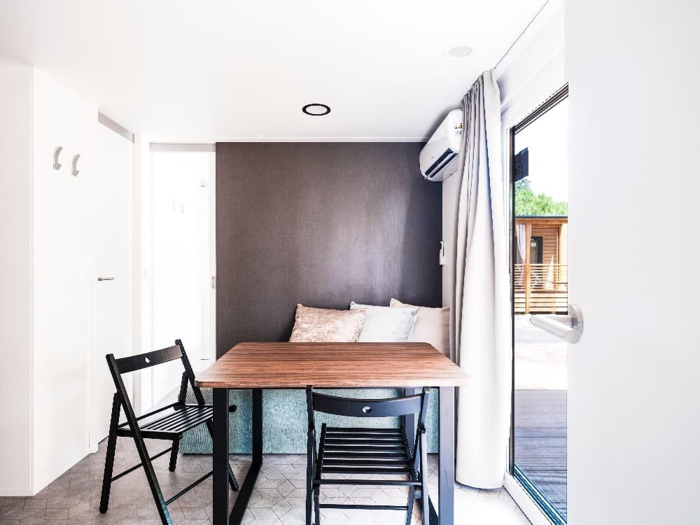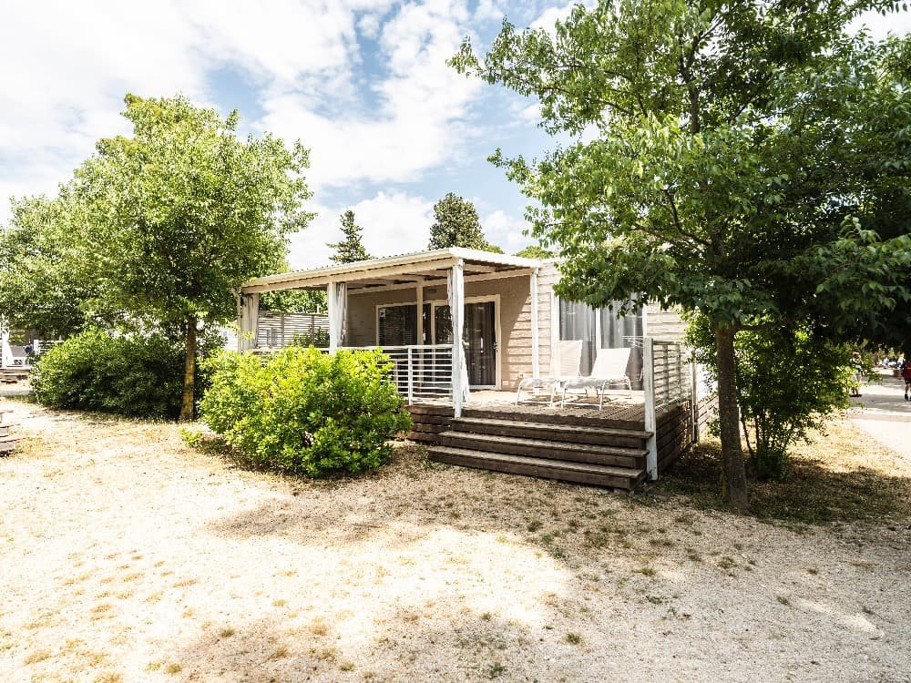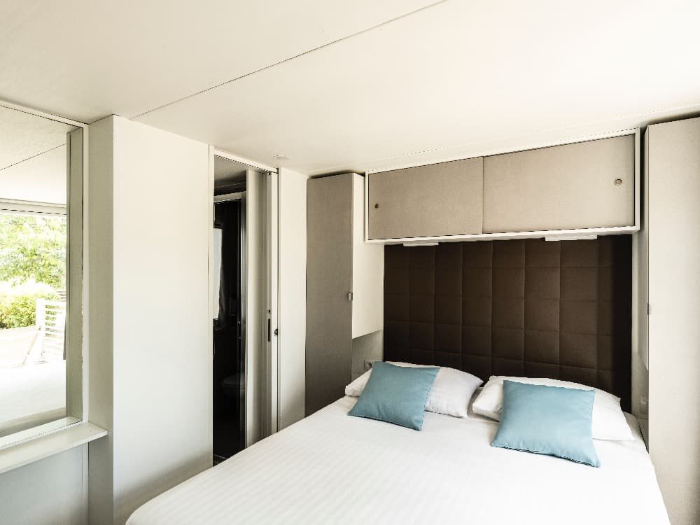 Superior Family 5+2: velikost mobilehomu 34,4 m 2 (několik typů mobilních domků), 1 ložnice (manželská postel), 1x ložnice (oddělená lůžka+postel v patře), jídelní kout s rozkládací sedačkou pro 2 osoby (lůžko 70 x 190 cm) v denní místnosti, kuchyňská linka pro vaření, plynový vařič se 4 hořáky, mikrovlnná trouba, kávovar, příbory a nože, lednička, SAT TV, klimatizace, 2x sprchový kout s WC, zastřešená terasa se zahradním nábytkem 25,8m 2 Mobilní domky jsou vzdálené cca 500 - 1000 od moře a pláže. K pláži jezdí v pravidelných intervalech zdarma vláček.