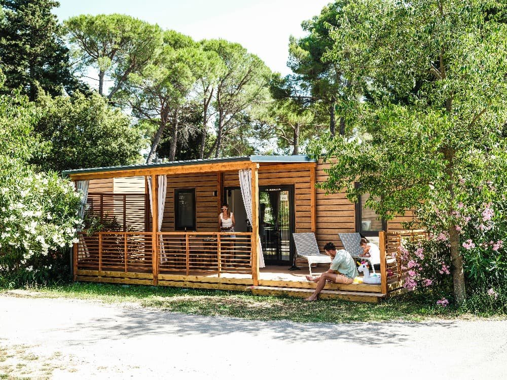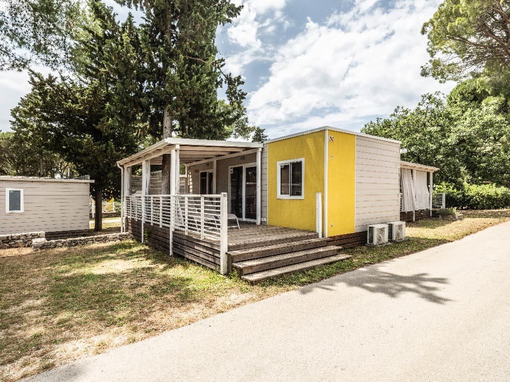 Premium Family 6+1 (v různých variantách designu): velikost mobilehomu 34,4 m 2 , 1 x ložnice (manželská postel), 2 x ložnice (2 oddělená lůžka) v denní místnosti rozkládací sedačka pro 2 osoby, kuchyňská linka pro vaření, plynový vařič se 4 hořáky, mikrovlnná trouba, kávovar, příbory a nože, lednička, SAT TV, klimatizace, 2x sprchový kout s WC , zastřešená terasa se zahradním nábytkem 25,8 m 2 . Mobilní domky jsou vzdálené cca 250 - 500 od moře a pláže. K pláži jezdí v pravidelných intervalech zdarma vláček.
