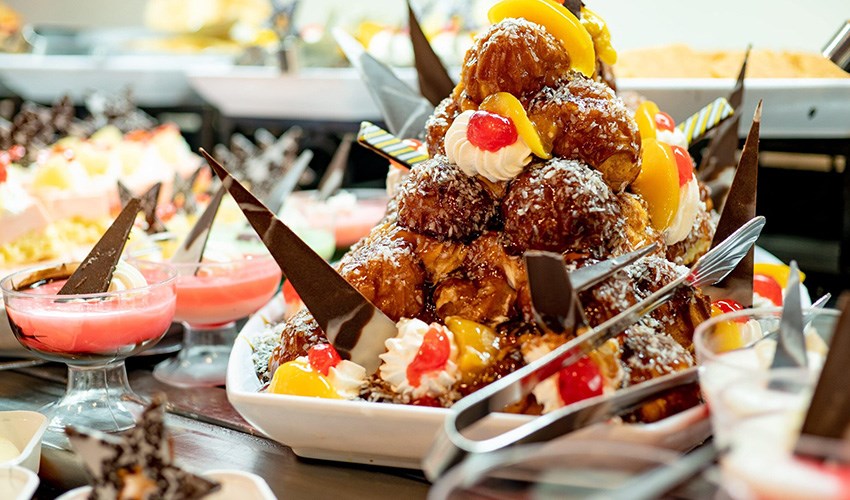 All inclusive – snídaně, obědy a večeře formou bufetu, občerstvení během dne. Neomezené množství vybraných nealkoholických a alkoholických nápojů místní výroby v místech a časech určených hotelem (07:00–24:00)