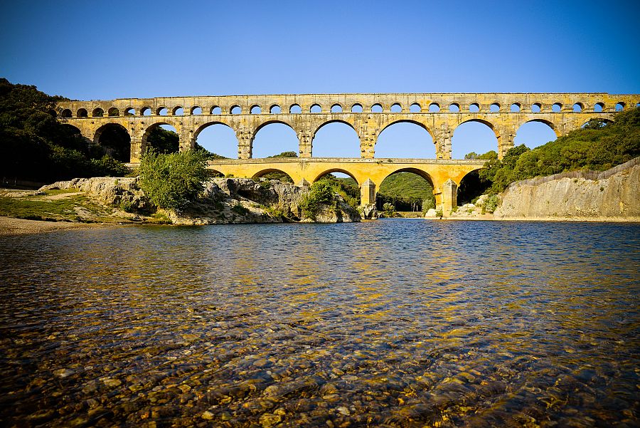 6. den: Den ve znamení přírodních krás…  Ráno se vydáme k akvaduktu Pont du Gard, poté nejen za plameňáky do parku Camargue a ještě stihneme poutní cikánské městečko Saintes-Maires-de-la-Mer. Po snídani odjezd k   Pont du Gard (UNESCO), mistrovskému dílu římského stavitelství a nejznámějšímu akvaduktu ve Francii, který přiváděl vodu do města Nîmes .  Jako v pohádkové zemi se ocitneme v přírodním parku Camargue (UNESCO). Tato rezervace je jedno z mála míst ve Francii, kde se vyskytují volně žijící plameňáci . Setkat se zde můžeme i s bílými koňmi a černými polodivokými býky využívanými pro místní nekrvavou koridu. V cikánském poutním městečku Saintes-Maires-de-la-Mer si prohlédneme kostel a hrob „černé“ svaté Sáry . Odpoledne v rámci individuálního volna bude možnost koupání na místních písečných plážích ,   popřípadě večeře v typické francouzské restauraci s ochutnávkou mořských plodů nebo specialit z býčího masa.