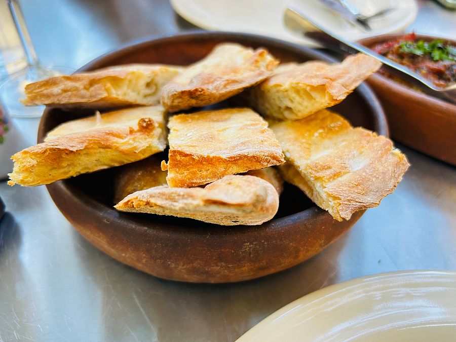 Poté si dáme výborný oběd v místní restauraci . Můžeme vyzkoušet například lavaš a šoti , což jsou tradiční gruzínské chleby pečené v peci zvané tone (hliněná pec ve tvaru válce). Chleba je základ všech jídel, často se jí rukama a používá se k nabírání omáček a mas.