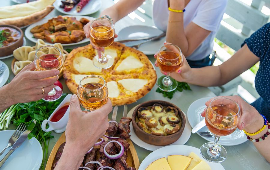 Nemine nás ani výborný oběd v tradiční restauraci a degustace tradičního gruzínského vína , např. tzv. amber vína (někdy označované jako oranžové víno), je to jedinečný a tradiční druh vína s hlubokými kořeny a velmi specifickým způsobem výroby. Tato metoda je UNESCO chráněným kulturním dědictvím.
