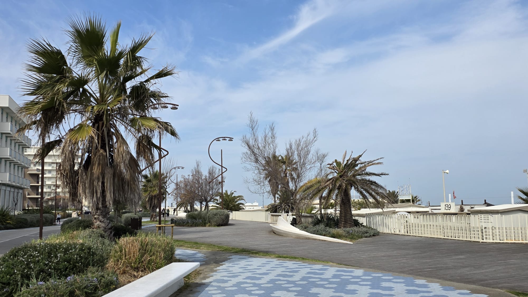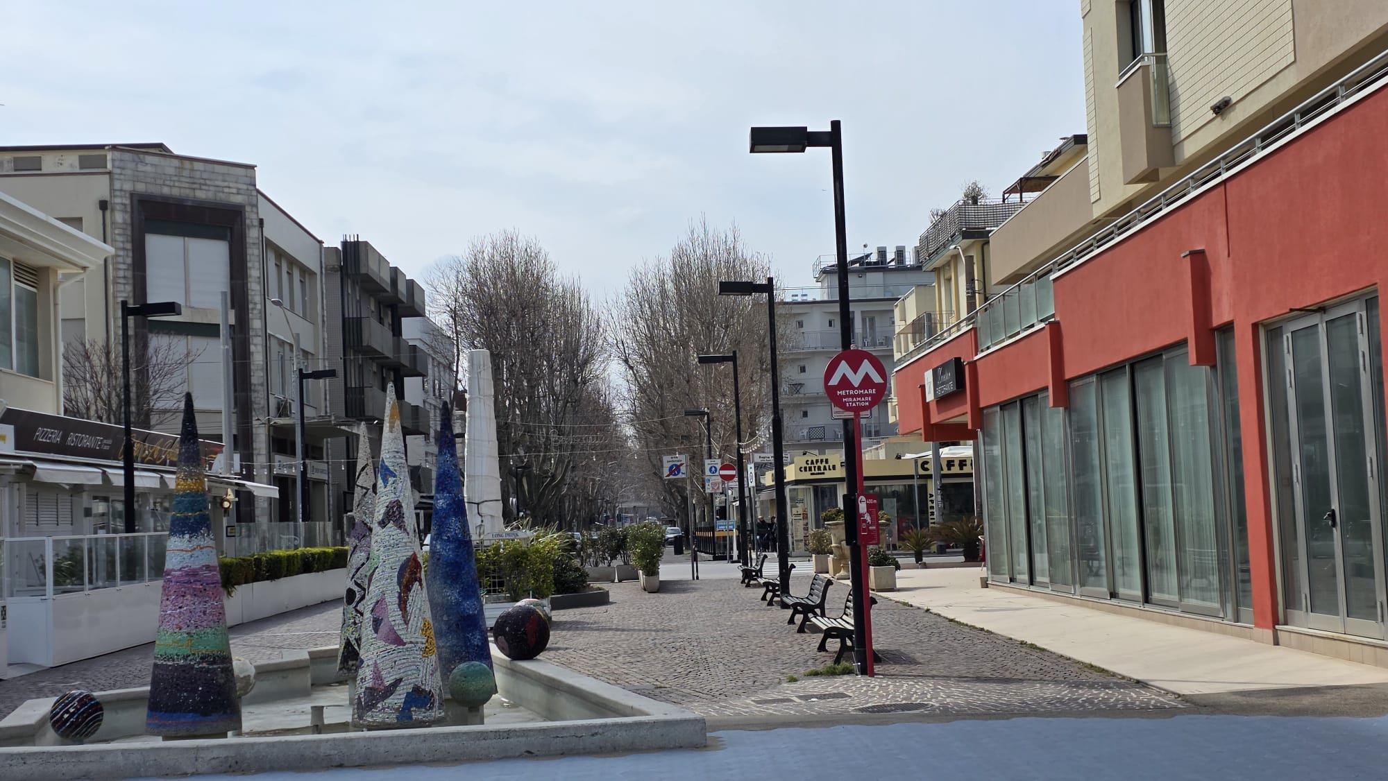 cca pouhých 250 m od pláže a 50 m od pěší zóny, která je pulzujícím centrem Miramare. V blízkém okolí (mezi 50 a 200 m) se nachází řada barů, restaurací, cukráren a obchodů všeho druhu (pekařství, rybárna, prodejna hotových jídel, supermarket, ovoce a zelenina). Apartmány se nacházejí pouhých 100 m od zastávky Metromare, která během několika minut pohodlně spojuje Miramare s centrem Rimini a Riccione. Železniční stanice Miramare je vzdálená 300 m, letiště Rimini 2 km (na vyžádání možnost rezervace soukromého transferu za poplatek). Místo pro nakládku/vykládku přímo u domu, placené veřejné parkoviště 250 m.