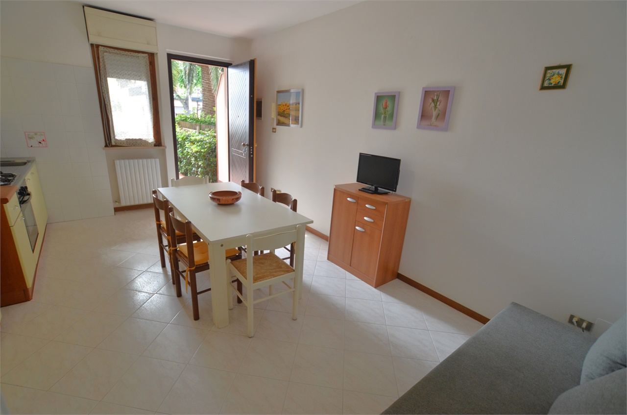 Příjemně zařízená menší budova se vším komfortem, pouhých 100 m od pláže a kousek od nákupní zóny.