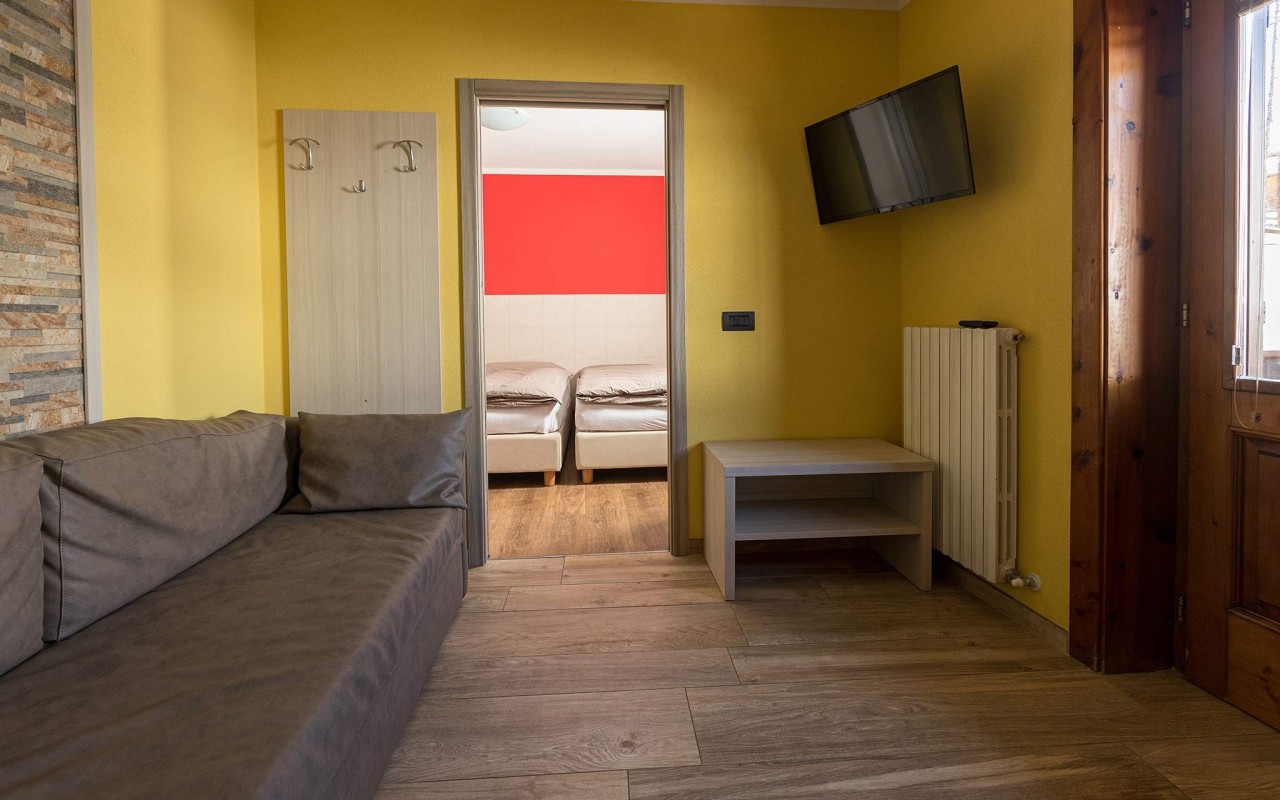 - apartmán č. 5 - TRILO 4/5 TEOLA - obývací pokoj s pohovkou, 1 ložnice se 2 lůžky a další ložnice se 3 lůžky, 2 koupelny