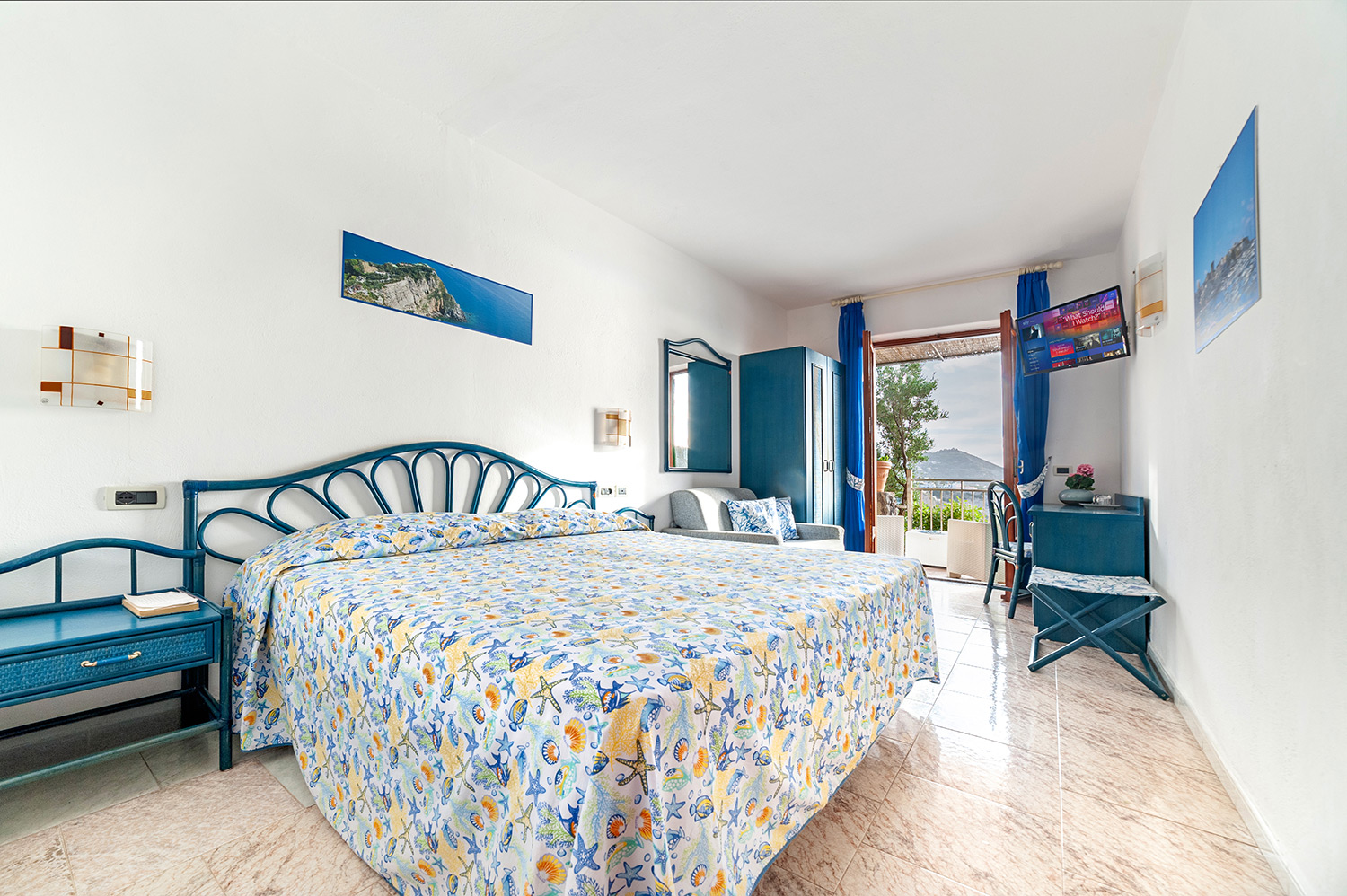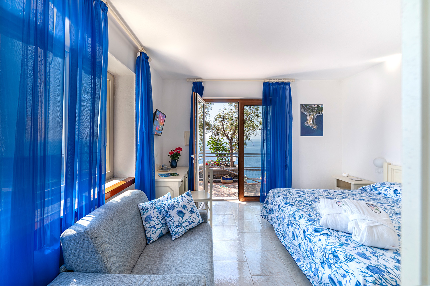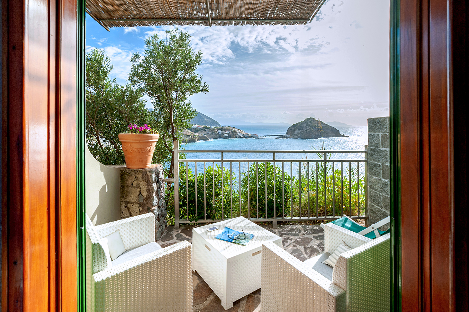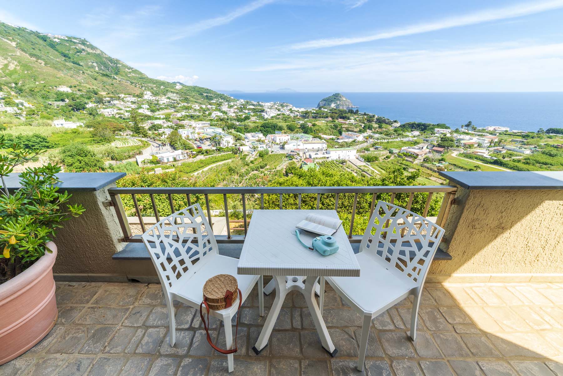 hotel nabízí soukromý vstup k zátokám Sorgeto (cca 270 schodů) a k moři s výhledem na Sant'Angelo (cca 200 schodů), hosté mohou využít shuttle bus do městečka Panza (cca 1-1,5 km), kde je nejbližší autobusová zastávka pro spojení po ostrově, nejbližší písčitá pláž se nachází v Sant'Angelo (cca 3 km) - dostupná autobusem z Panzy