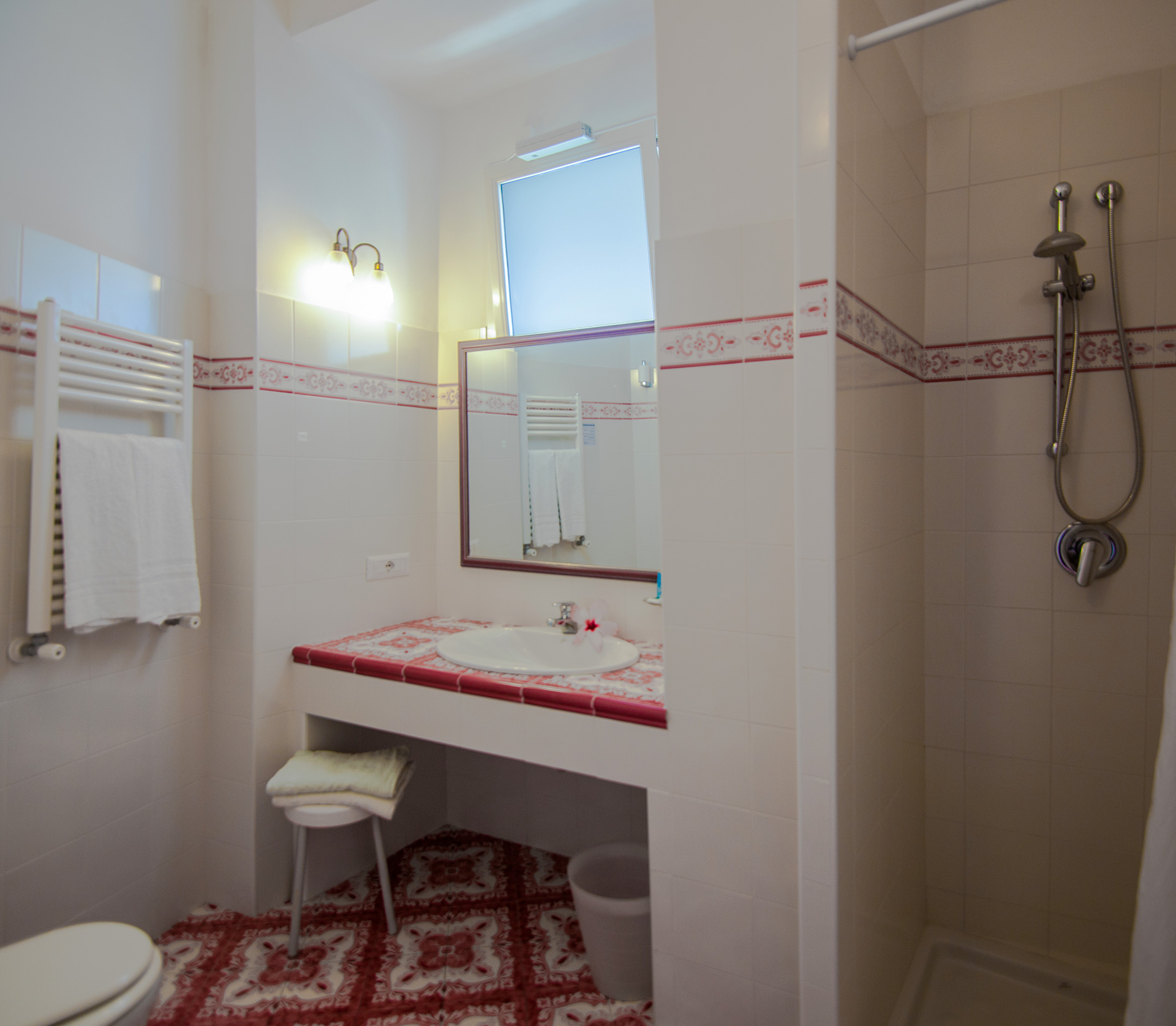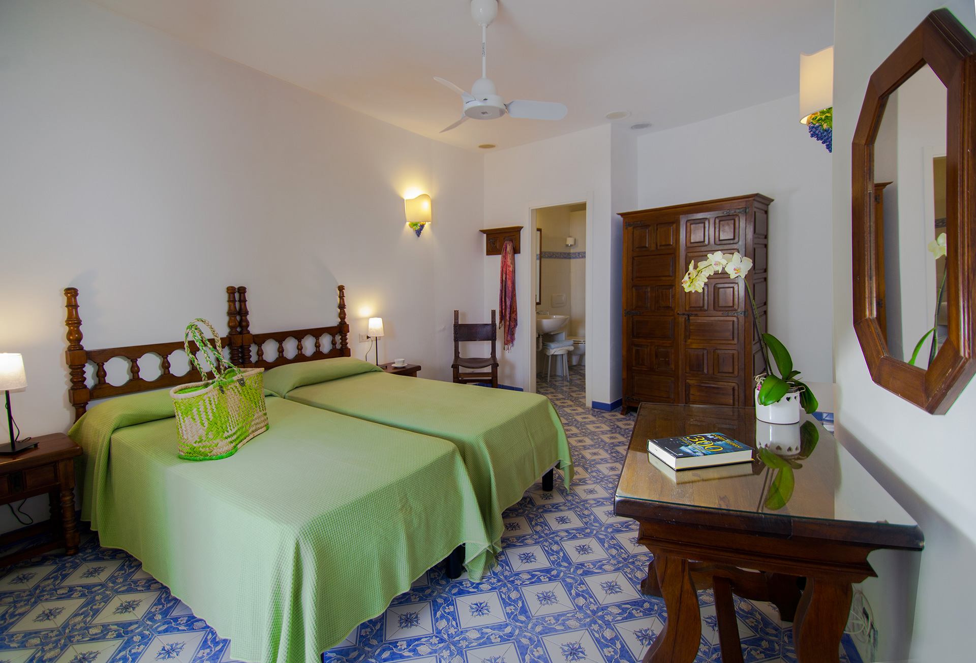 pokoje s výhledem na moře: mohou se pochlubit krásným výhledem na moře, mají ručně malované keramické podlahy Vietri, stylový nábytek, vlastní koupelnu se sprchovým koutem, klimatizaci vždy od června do září v ceně, WI-FI zdarma, satelitní TV, mini bar, telefon, trezor, topení, ventilátor, terasa nebo balkon