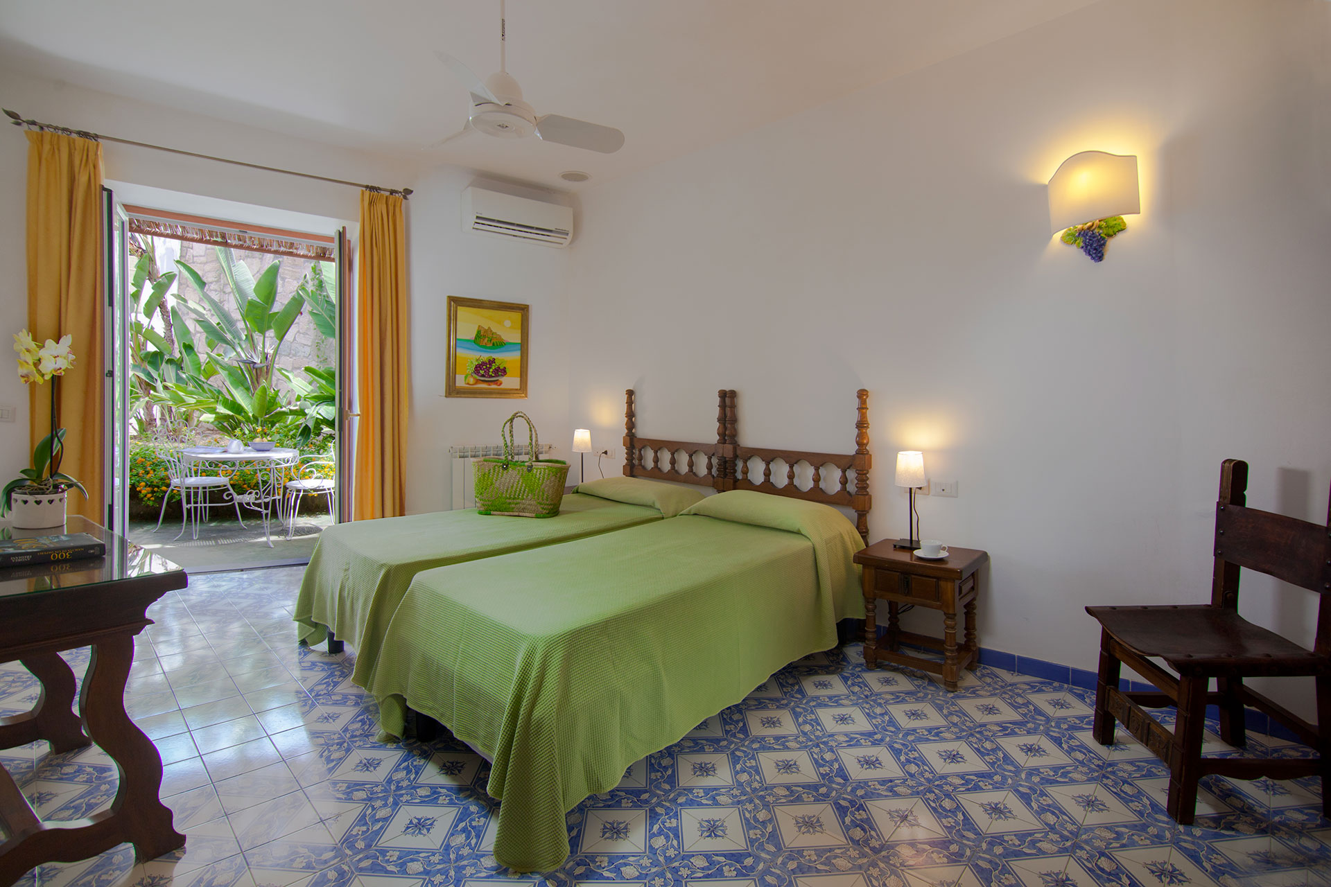 pokoje Standard: jsou umístěny ve vile obklopené zahradou, 60 m od recepce. Mají ručně malované keramické podlahy Vietri, vlastní koupelnu se sprchou, klimatizaci v ceně od června do září, bezplatné WI-FI, satelitní TV, mini bar, telefon, trezor, topení, stropní ventilátor, soukromou terasu směrem do malé zahrady nebo na hotelovou stranu