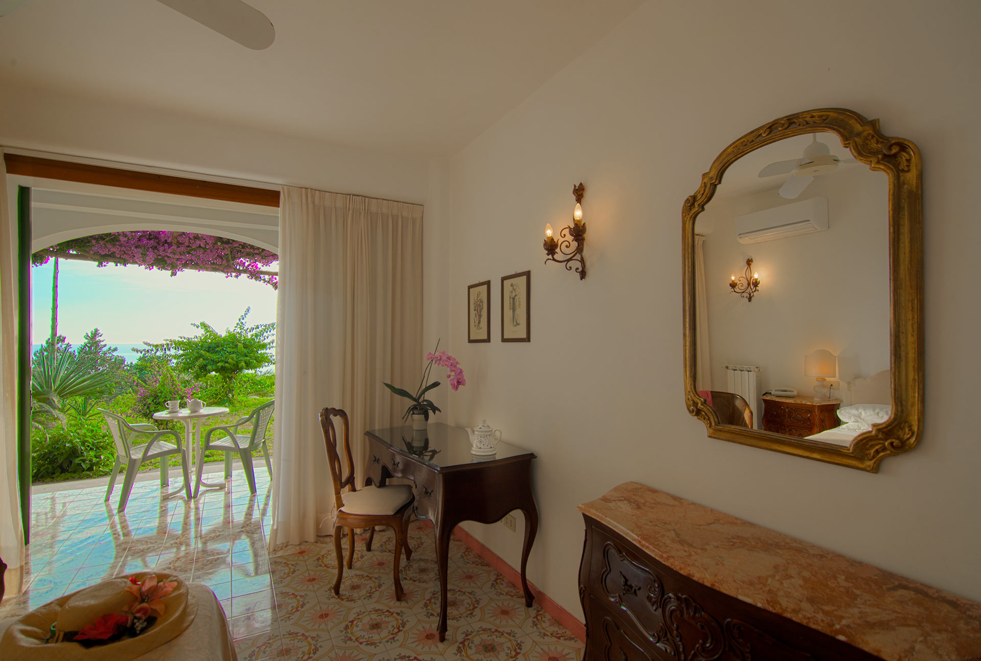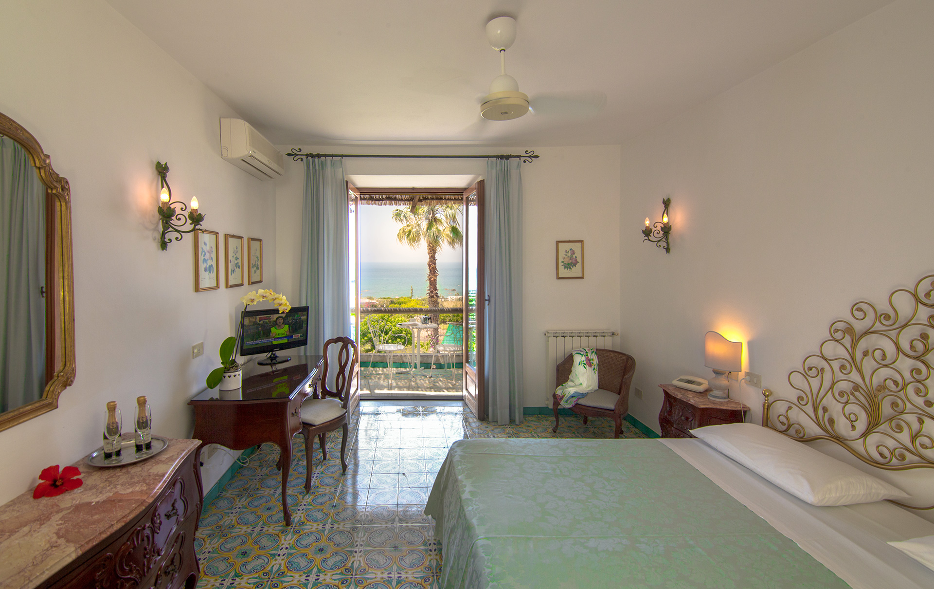 pokoje Superior s výhledem na moře: mohou se pochlubit skvělým výhledem na záliv Citara. Mají ručně malované keramické podlahy Vietri, stylový nábytek, vlastní koupelnu se sprchovým koutem, klimatizaci v ceně vždy od června do září, bezplatné WI-FI, satelitní TV, mini bar, telefon, trezor, topení, ventilátor, soukromý balkon
