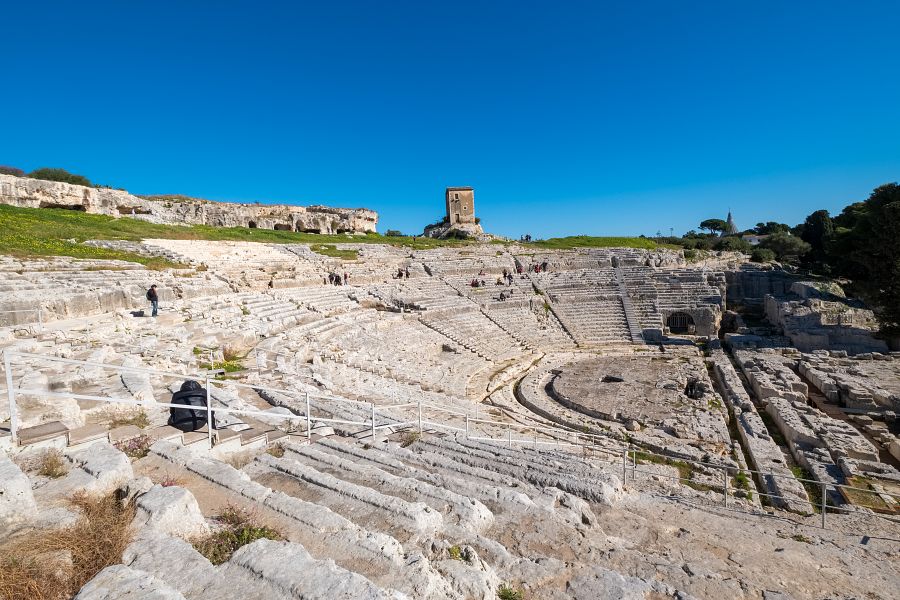 3. den: Den ve znamení antické slávy Syrakus. Prozkoumáme jeho historické centrum, kterým je ostrůvek Ortigia. Uvidíme katedrálu i nejstarší dórský chrám. Odpoledne věnujeme odpočinku u moře.  Ranní hodiny věnujeme významné velmoci starověkého světa , městu  Syrakusy (UNESCO)  a jeho historickému srdci , kterým je malebný ostrůvek Ortigia . Naše kroky povedou na Piazza del Duomo , rozlehlé náměstí, které nás okouzlí svou bělostnou elegancí a světlem. Zde se nachází náš hlavní cíl – katedrála , jejíž barokní fasáda ukrývá starověký dórský chrám . Jen pár kroků odtud navštívíme kostel Santa Lucia alla Badia a ruiny  Tempio di Apollo, nejstaršího dórského chrámu na Sicílii . Poté zamíříme do Parco Archeologico Neapolis , kde budeme obdivovat monumentální Řecké divadlo , vytesané přímo do skály, které je dodnes využíváno pro kulturní představení. Kousek odtud si prohlédneme pozůstatky  Římského amfiteátru , kde kdysi bojovali gladiátoři a konaly se zde závody. Odpoledne opustíme ruch starého města a vyrazíme se zájemci veřejnou dopravou za zaslouženou relaxací. Naším cílem bude nedaleká pláž Fontaine Bianche . Je to idylické místo, kde si užijeme koupání v tyrkysově modrém Jónském moři .