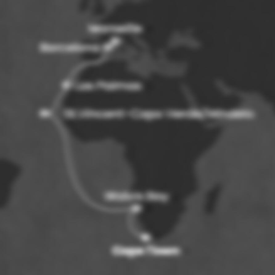 Cape Town (Jihoafrická r.) - Walvis Bay (Namíbie) - Mindelo (Kapverdy) - Las Palmas (Španělsko) - Barcelona (Španělsko) - Marseille (Francie).