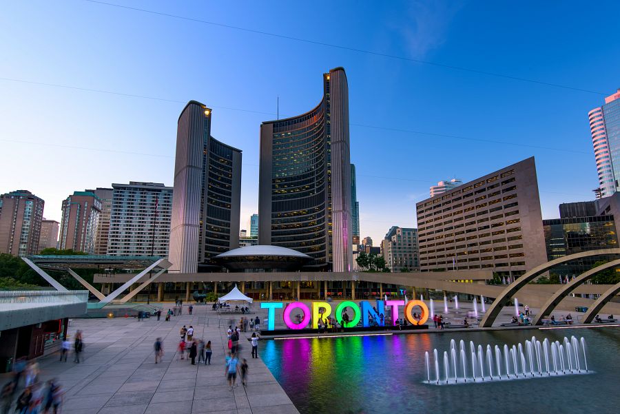 Poté se přesuneme na náměstí Nathan Phillips Square , do pravého centra města, kde budeme moci obdivovat obrovské fontány, které stříkají více než 45 000 litrů vody za minutu. Neunikne nám budova Staré a Nové radnice ani půvabný kostel Nejsvětější trojice , patřící k nejstarším stavbám ve městě.