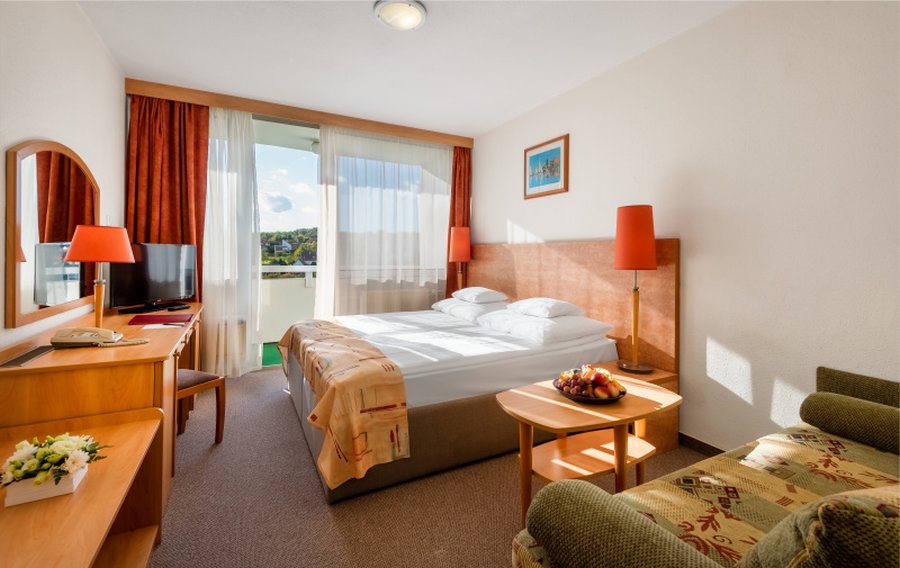 2lůžkové pokoje některé s možností 1-2 přistýlek (palanda) a apartmány, sprcha a WC, TV-SAT, balkon, telefon, minibar.