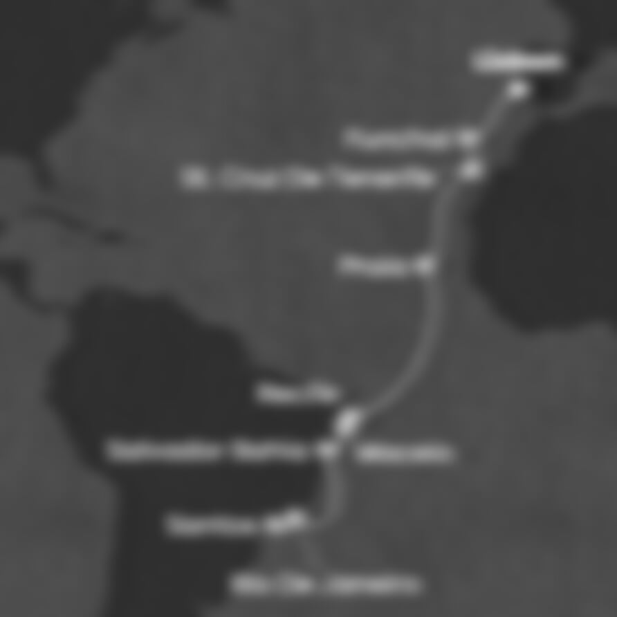 Lisabon (Portugalsko) - Funchal (Portugalsko) - St. Cruz de Tenerife (Španělsko) - PRAIA - Recife (Brazílie) - Maceio (Brazílie) - Salvador de Bahia (Brazílie) - Rio de Janeiro (Brazílie) - Santos (Brazílie).