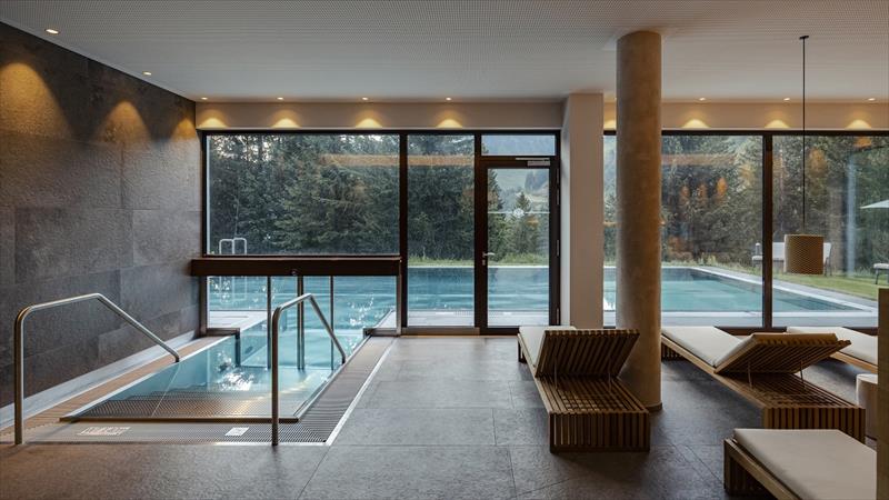 zazemi: v ceně venkovní vyhřívaný bazén 13 x 6 m se vstupem zevnitř, sauna, pára, infrakabina, odpočívárna (wellness přístupné od 12 let).