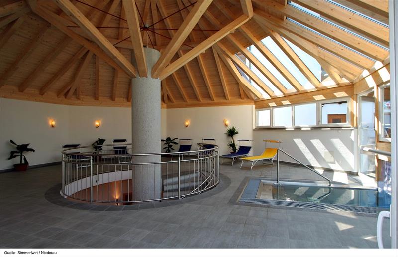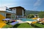 zazemi: v ceně venkovní vyhřívaný bazén 6 x 12 m se vstupem zevnitř a wellness se saunou, párou, infrakabinou a odpočívárnou.