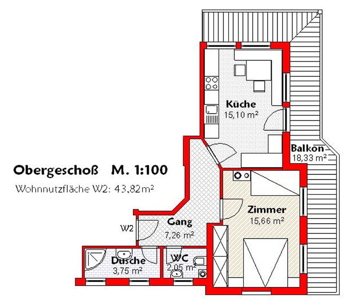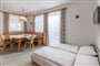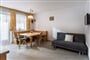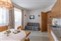 Apartmán pro 2-3 osoby (cca 43 m2): 1 oddělená ložnice, balkón, vybavená kuchyň vč. kávovaru, el. sporáku s troubou, apod., jídelní kout, koupelna se sprchou, oddělené WC, SAT-TV a předsíň.