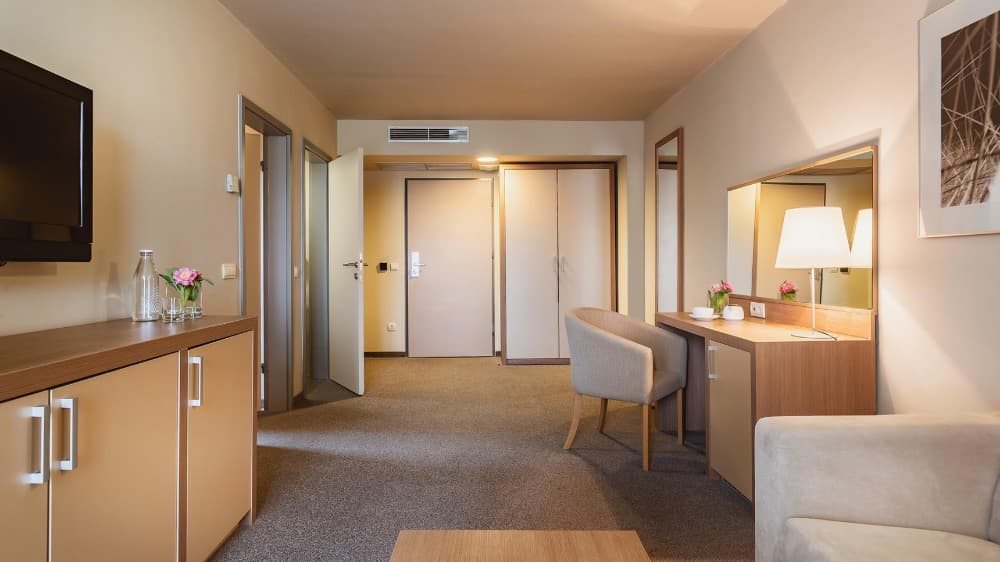 Ubytování: dvoulůžkové pokoje s možností jedné přistýlky, mají koupelnu s WC, SAT TV, telefonem, minibarem. Některé pokoje jsou s balkonem. Na vyžádání je možné zajistit ubytování v antialergenních pokojích (celkem 42 pokojů, mají parkety, ionizátory vzduchu a solné lampy) nebo ubytování v apartmánech, které mají navíc obývací místnost.