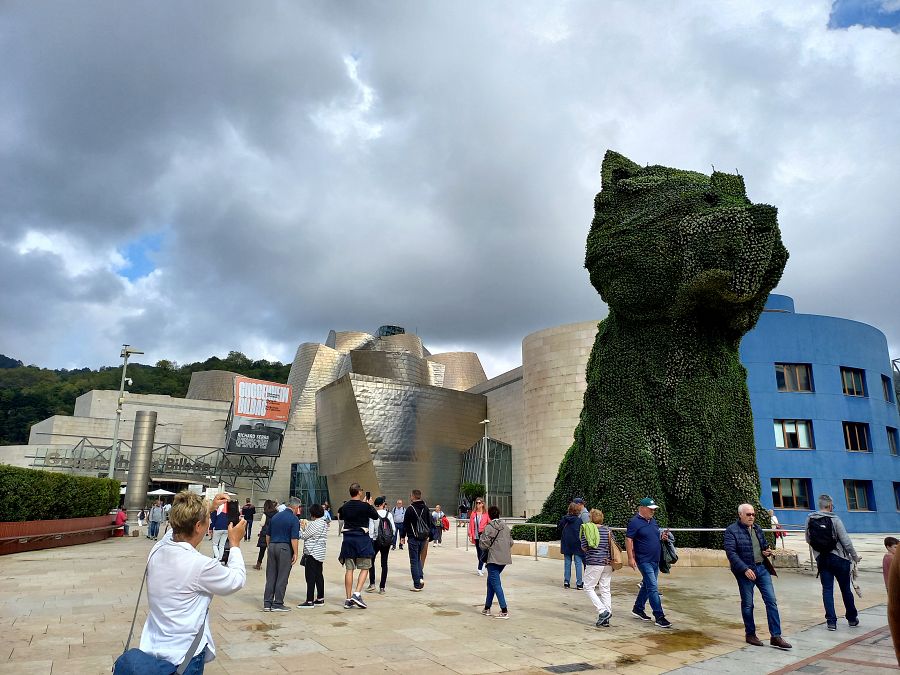 2. den: Dnešek naplno věnujeme poznávání Bilbaa. Budeme objevovat historické centrum s jeho typickou architekturou i umění Guggenheimova muzea. A ochutnávat baskické speciality… Projdeme se historickým centrem Bilbaa kolem krásné industriální budovy nádraží, přejdeme řeku Nervión a zamíříme do starého města, tzv. Casco Viejo .  Po cestě nevynecháme Nové náměstí (Plaza Nueva) , které je místem setkávání místních a které potěší především milovníky dobré gastronomie. Tady si názorně ukážeme, co jsou to baskické „pintxos“ – nejrůznější jednohubky napíchnuté na špejli. V místních barech můžeme ochutnat ty nejlepší. Pak se křivolakými uličkami starého města s typickou baskickou architekturou přesuneme ke gotické katedrále, zastavíme se u místního muzea a dojdeme až k oblíbené tržnici, kde nás bude čekat další várka pintxos a jiných delikates. Tady můžeme nabrat síly a energii na odpolední program. Po obědě nás čeká slibované setkání s uměním , podél řeky se procházkou vydáme ke slavnému Guggenheimovu muzeu. Zastavíme se u známého Bílého mostu , v baskičtině zní jeho název poněkud krkolomně „ Zubizuri “, proto mu místní říkají jednoduše Calatrava podle architekta, který ho navrhl. A pak už nás čeká úžasná budova Guggenheimova muzea . Ať už jste milovníky moderního umění, či nikoli, věříme, že tahle stavba vás jistě uchvátí. Muzeum střeží gigantický pejsek Puppy , socha, která je, věřte nevěřte, celá z květin. Odpoledne můžete věnovat prohlídce muzea nebo se jen tak toulat uličkami města a ochutnat mimo zmiňovaných pintxos místní speciality, třeba známý místní dezert Carolina. A večer nás čeká téměř povinná návštěva místních hospůdek. Přesvědčíme se, že večer to tu prostě žije! Návrat na hotel v podvečerních hodinách s průvodcem nebo později individuálně.