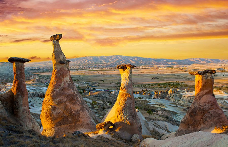 Po snídani se vydáme objevovat pohádkovou část Turecka – Kappadokii , okouzlující krajinu úžasně erodovaného tufu (ztvrdlého sopečného popela).