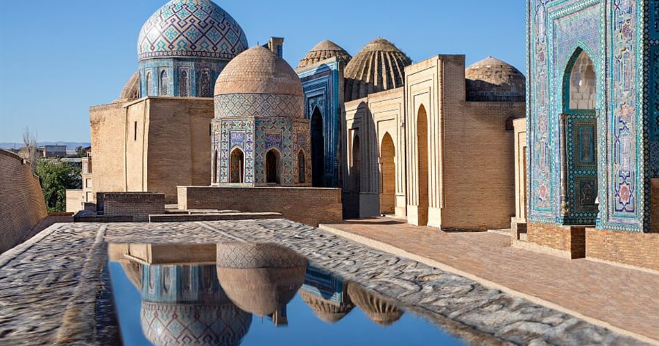 5. den: Čeká nás slavný Samarkand. Podíváme se na náměstí Registan a k mešitě Bibi-Khanum. Navštívíme tradiční bazar Siab a zastavíme se na nekropoli Shakhi-Zinda i u observatoře Ulugbek. Po brzké snídani pojedeme rychlovlakem do Samarkandu (UNESCO). Po příjezdu vyrazíme na prohlídku druhého největšího města Uzbekistánu a jednoho z nejkrásnějších historických měst na Hedvábné stezce. Začneme v mauzoleu Gur-Emir, poté se přesuneme na náměstí Registan – údajně jedno z nejkrásnějších na světě – které je ze tří stran obklopeno nádhernými madrasami z 15.–17. století . Nevynecháme ani monumentální mešitu Bibi-Khanum nebo tradiční rušný trh Bazaar Siab s mnoha obchůdky s ovocem, tradičními pokrmy nebo kořením.  Zastavíme se na  nekropoli Shakhi-Zinda  s celkem 11 krásně zdobenými středověkými mauzolei a s „imaginární hrobkou“ bratrance proroka Mohameda. Dále budeme pokračovat do unikátní  astronomické observatoře Ulugbek  z 15. století nebo k údajné hrobce starozákonního proroka Daniela, kterého zde uctívají muslimové, židé i křesťané společně. Poté se již pouze ubytujeme a odpočineme si.